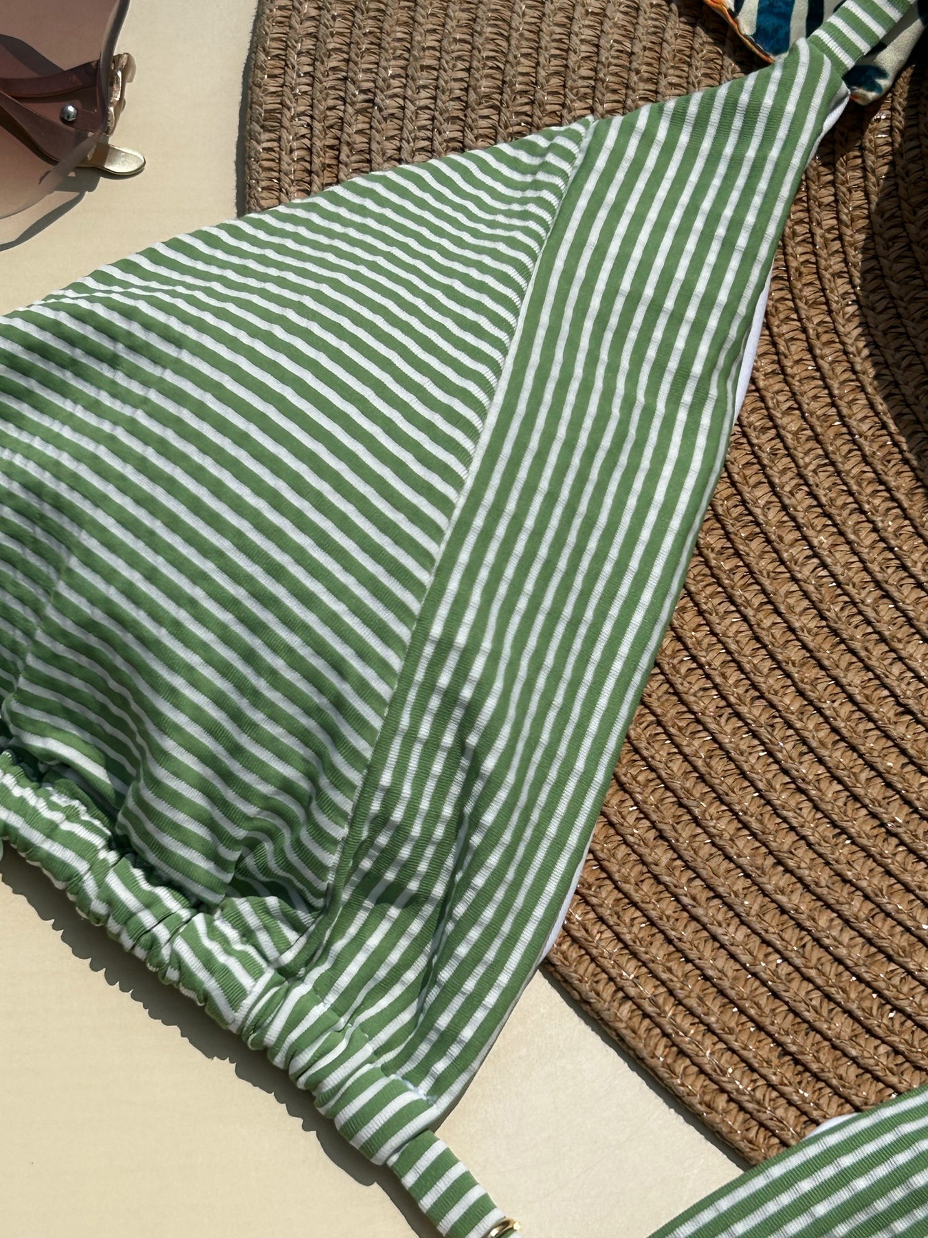 Rayas verdes, aire náutico y un estilo europeo que se siente fresco, limpio y elegante. Es ese bikini que parece sacado de una postal en la costa italiana: minimal, favorecedor y perfecto para días de sol y fotos luminosas. Diseñado para verte impecable sin esfuerzo, de playa a sunset.