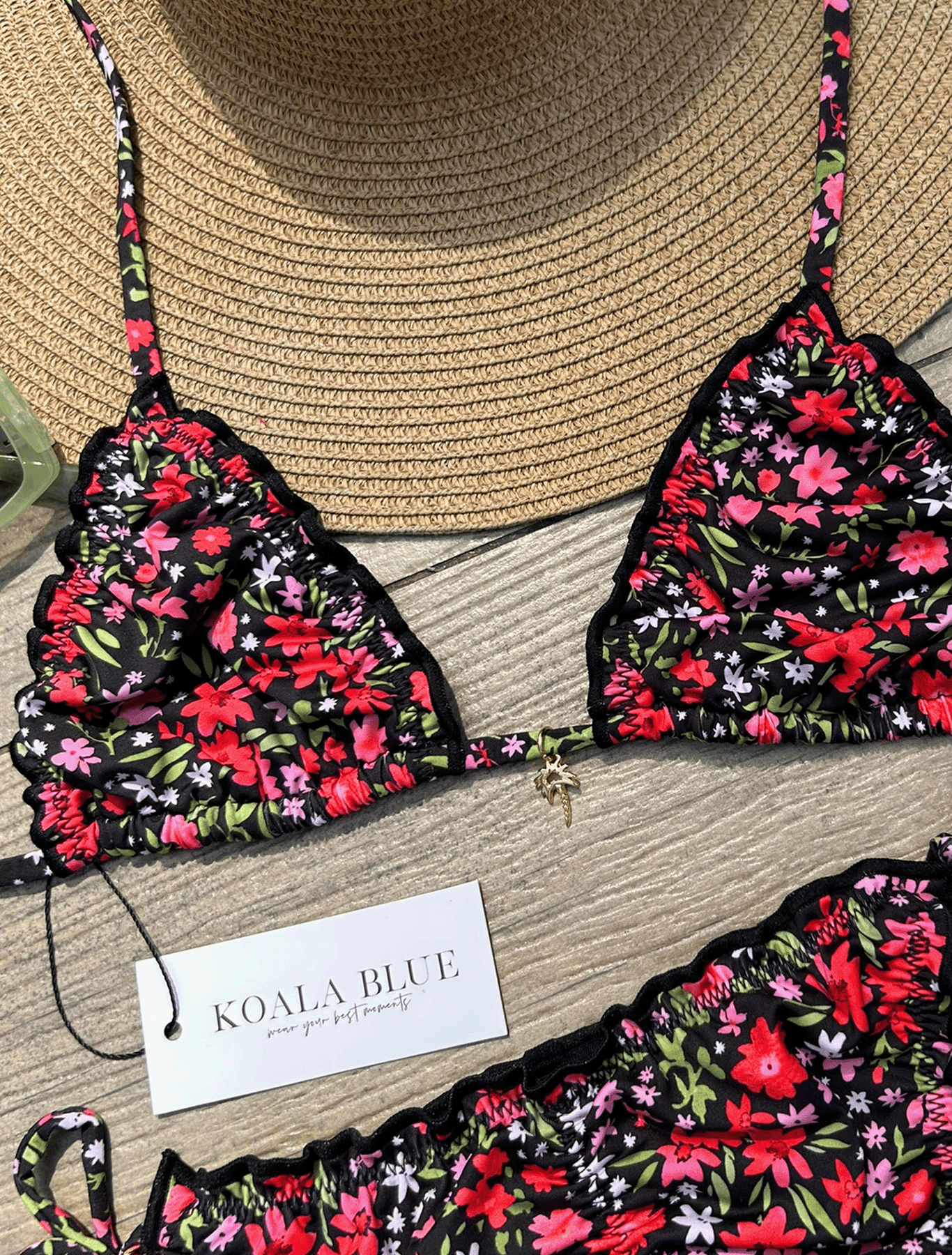 Un estampado vibrante que roba miradas y te pone en “modo verano” al instante. Sus golas delicadas en el top y en el bottom le dan ese toque único, femenino, coqueto y diferente, sin perder lo sofisticado.